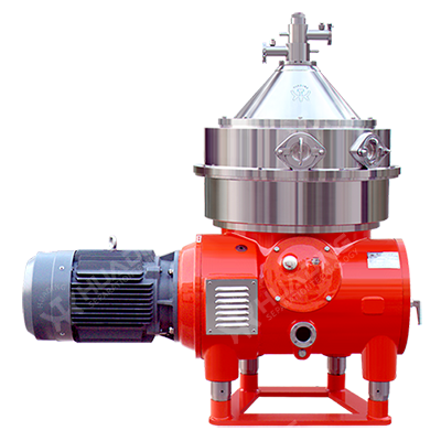 分离在装有锥形碟片的旋转转鼓内完成,实际的分离过程发生在每片碟片的间隙中。液体进料通过固定的进料管进入转鼓,到达位于转鼓中心的旋转分配器,随后进入碟片组。固体颗粒通过转鼓外围的喷嘴连续排出,并借重力经由机架上的出口离开机器。水被推向转鼓壁,在压力作用下通过向心泵排出。浓缩的油则由另一个内置的向心泵泵出。如果转鼓内的油水分层外移,存在油与固体一同被排出的风险,位于上方的平衡水箱会自动向转鼓内补水,将油层推回正常位置。