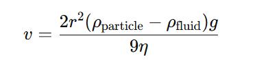 对于粘性流体中的球形小颗粒,其沉降速度(终端速度)可通过斯托克斯定律计算: